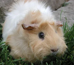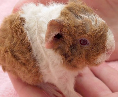 A white-haired guinea pig with pink eyes named Orlovo (pictured)